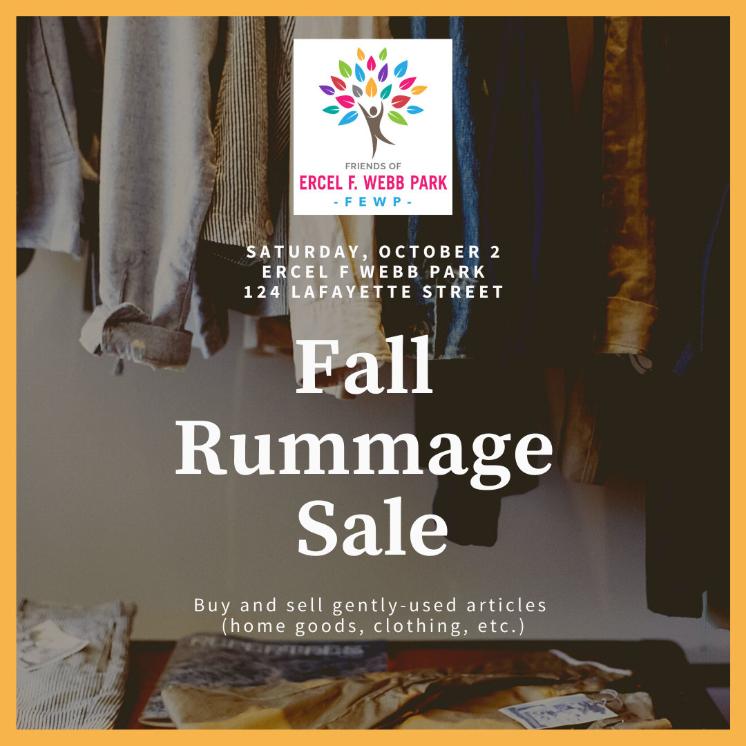 Los Amigos de Ercel F.Webb Park (FEWP) se complace en anunciar la Venta de artículos usados de otoño para crear una comunidad, promover la sostenibilidad y recaudar fondos para todo el valioso trabajo que nuestro grupo de voluntarios hace para mejorar y mantener nuestro hermoso parque como un oasis urbano para nuestros vecindario. Compre o venda artículos para el hogar, ropa, etc.